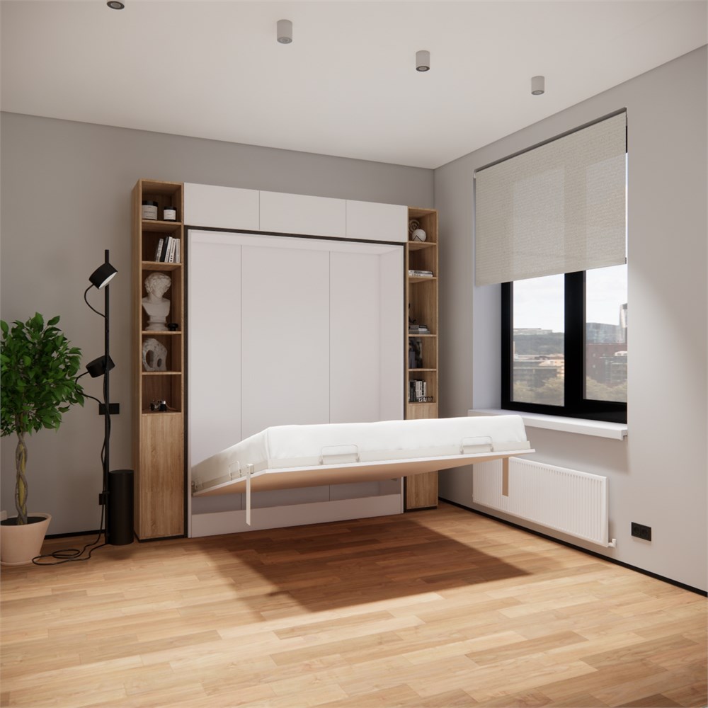 Комплект-трансформер с полноценной кроватью, которую днем вы можете легко поднять, освободив пространство для жизни, - идеальное решение для небольшой квартиры или студии. Конструктив продуман до мелочей. Оптимальное соотношение функциональности и стоимости. Ничего лишнего.